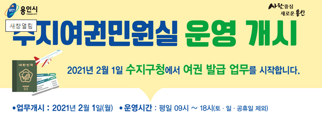 그동안 여권 발급의 불편했던 용인 서북부 지역 주민들께는 기쁜 소식이 아닐 수 없습니다